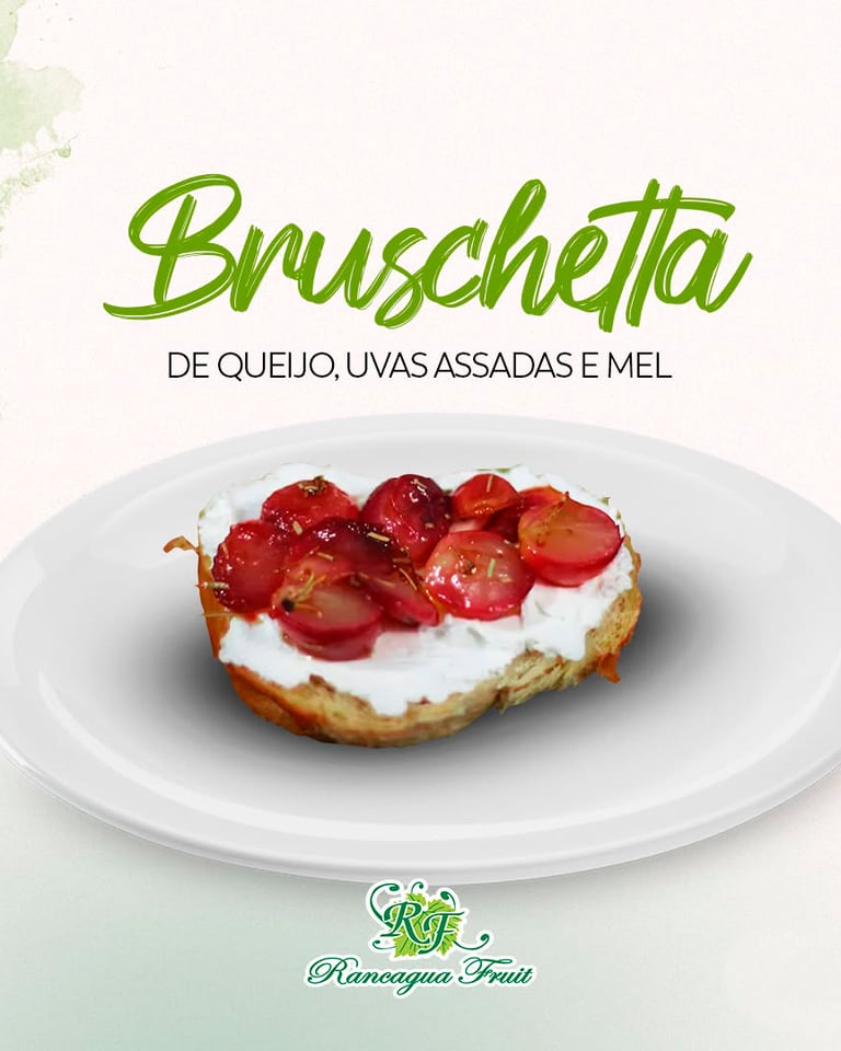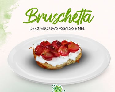 BRUSCHETA DE QUEJO, UVAS ASSADAS E MEL